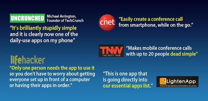 ** Calls are instant - no Signup, no Dial-in number and no PIN number to remember - press the call button and everyone's phone rings and they are connected.